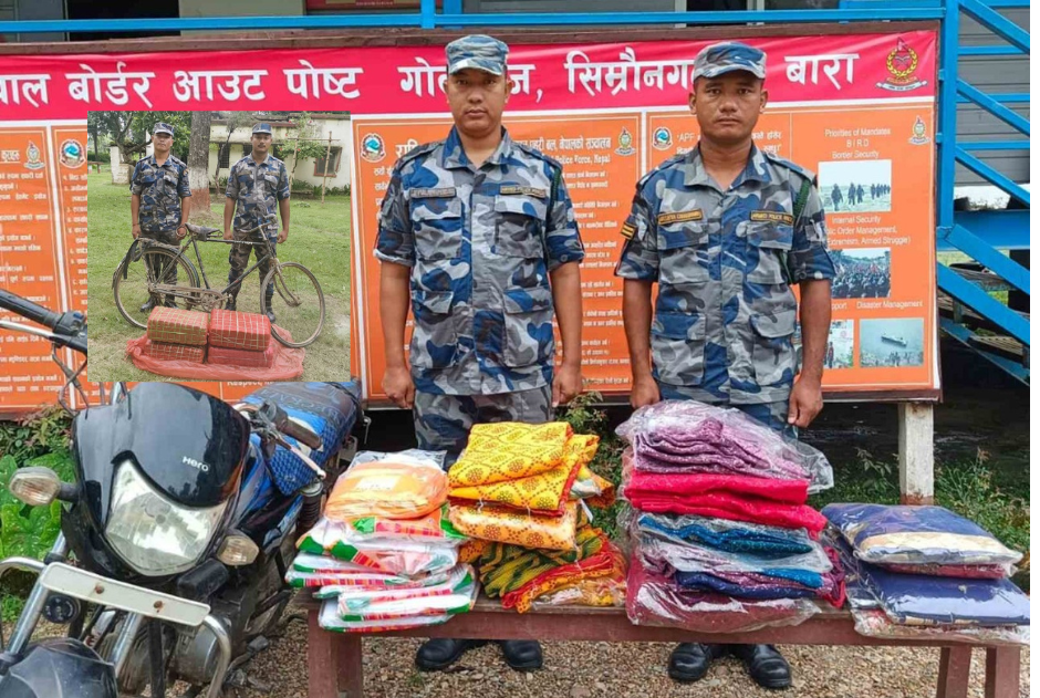 त्यस्तै सिम्रौनगढ नगरपालिका–६ अमरपुर नाकामा बीओपी गोलागञ्जबाट खटिएको टोलीले मोटरसाइकलसहित १ लाख ३२ हजार ६ सय रुपैयाँ बराबरको लेडिज लत्ताकपडा बरामद गरेको छ।
