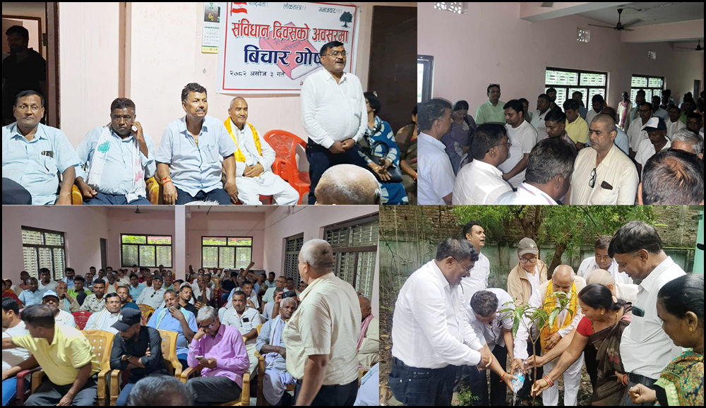 संबिधान दिवस को अवसरमा नेपाली काँग्रेस बाराले विचार गोष्ठी तथा बृक्षारोपण कार्यक्रम सम्पन्न गरेको छ । विचार गोष्ठी तथा बृक्षारोपण कार्यक्रमलाई सम्बोधन गर्दै नेपाली काँग्रेसका केन्द्रिय सह महामन्त्री एवं पुर्व मन्त्री उमाकान्त चौधरीले सबैको साझा र सवैको उत्तरदायीत्व बोध हुने गरी संविधानको पालना गर्नुपर्ने बताएका छन । हाल नेपालमा भएका जेन जी भाई बहिनीहरुले गरेका आन्दोलनमा सहिद भएका प्रति हार्दिक श्रद्धाञ्जली तथा शोक सन्तप्त परिवार प्रति गहिरो सम्वेदना व्यक्त गरेका थिए ।