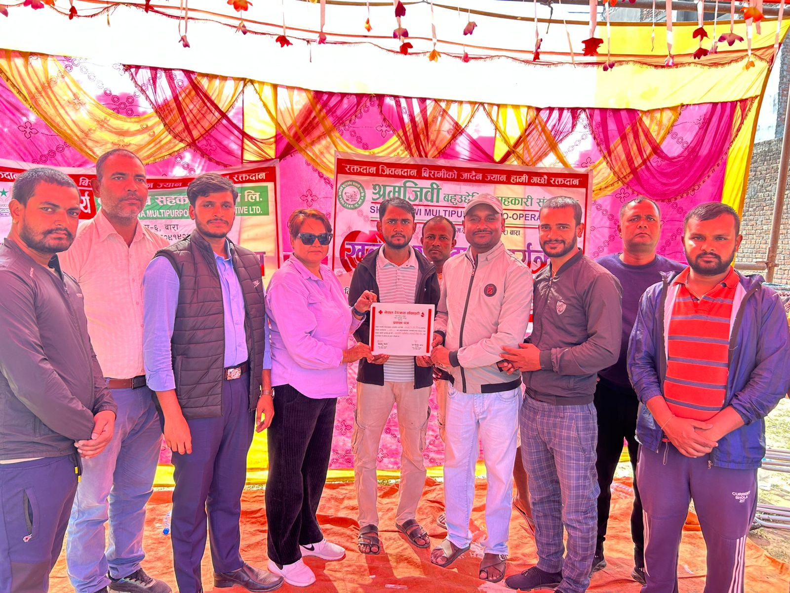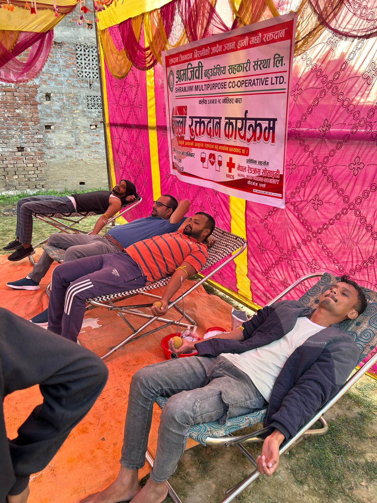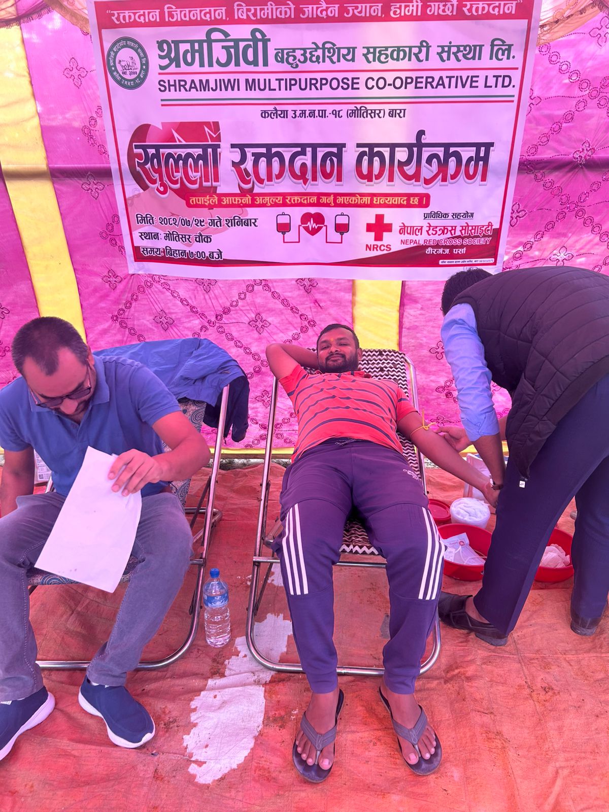 बारा। श्रमजिवी बहुउदेशीय सहकारी सहकारी लि. को बार्षिक कार्यक्रम अनुसार रक्तदान कार्यक्रम सम्पन्न भएको छ ।कलैया उपमहानगरपालिका वडा नं. १८ मोतिसर चौकमा संस्थाको आयोजना तथा नेपाल रेडक्रस सोसाइटी पर्साको प्राविधिक सहसोगमा सम्पन्न कार्यक्रममा एक जना महिला गरी जम्मा ७२ युनिट रगत संकलन भएको संस्थाको मैनेजर सदाम मंसुरले जानकारी गराए ।